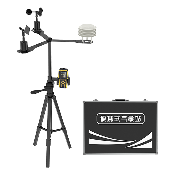 便携式气象站是一款自动气象站观测设备。该设备由手提箱、三脚架、数据采集终端、传感器设备组成。